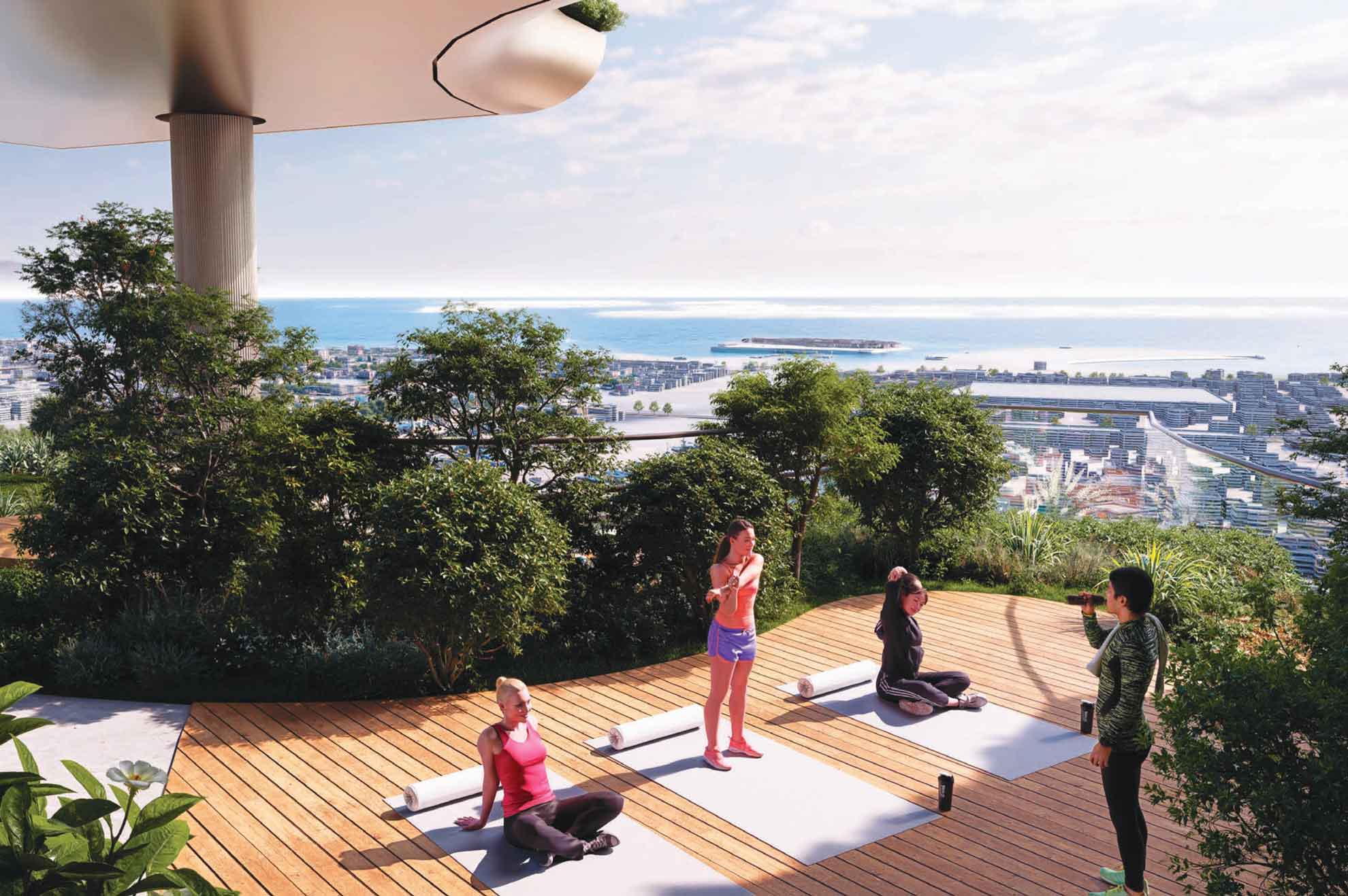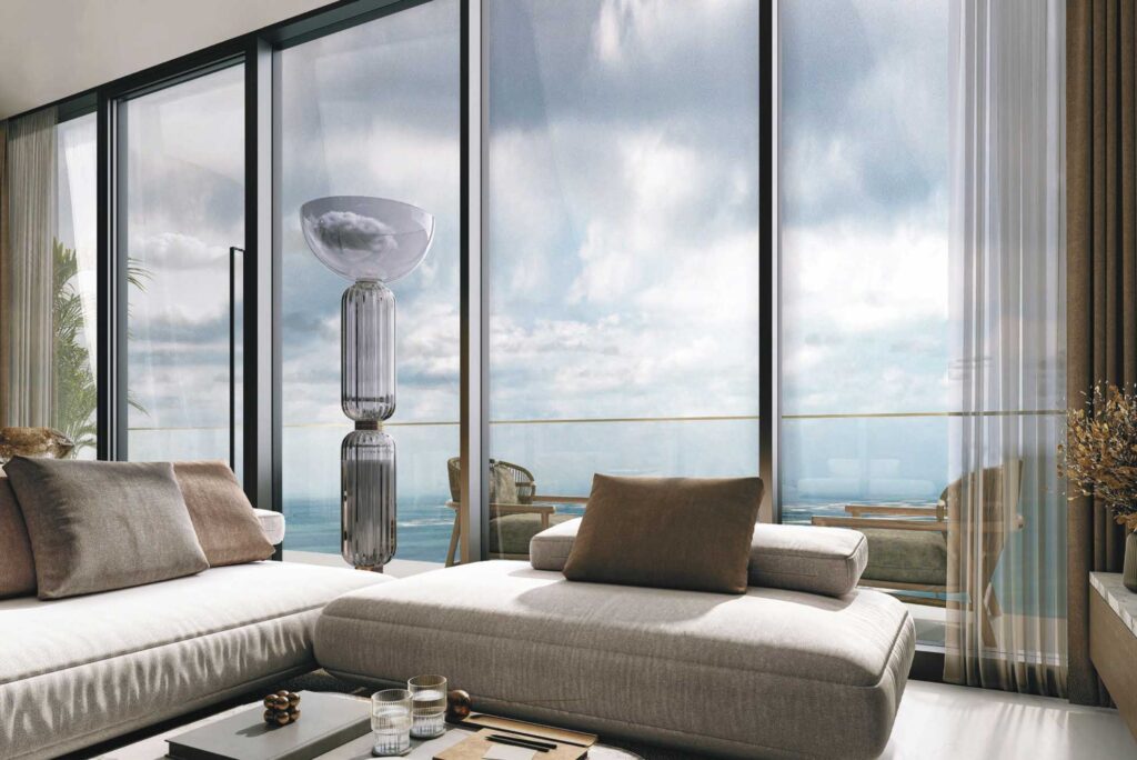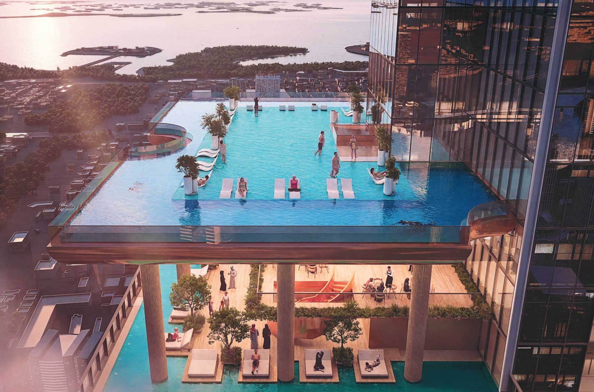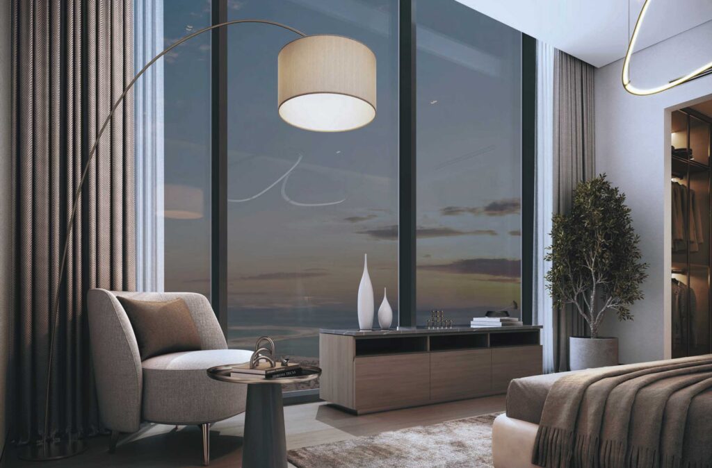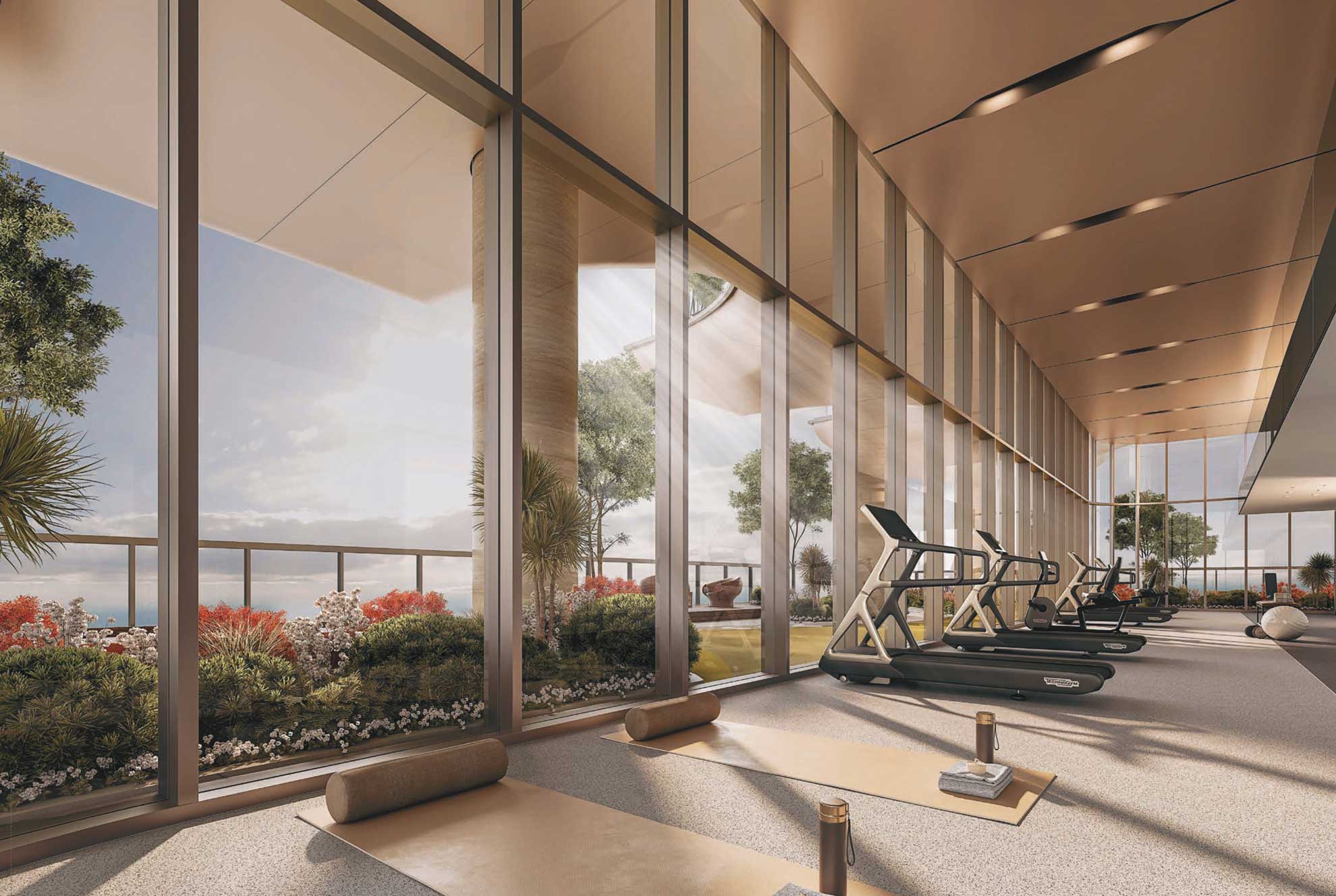 Kitchens come fully fitted, and every bedroom includes built-in wardrobes. From two bedroom apartments onward, a dedicated maid’s room is included, while the master suites are enhanced with luxurious bathtubs.